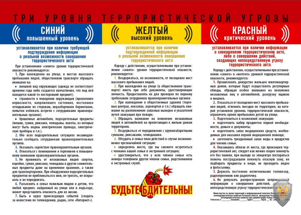 Памятка. Три уровня террористической угрозы